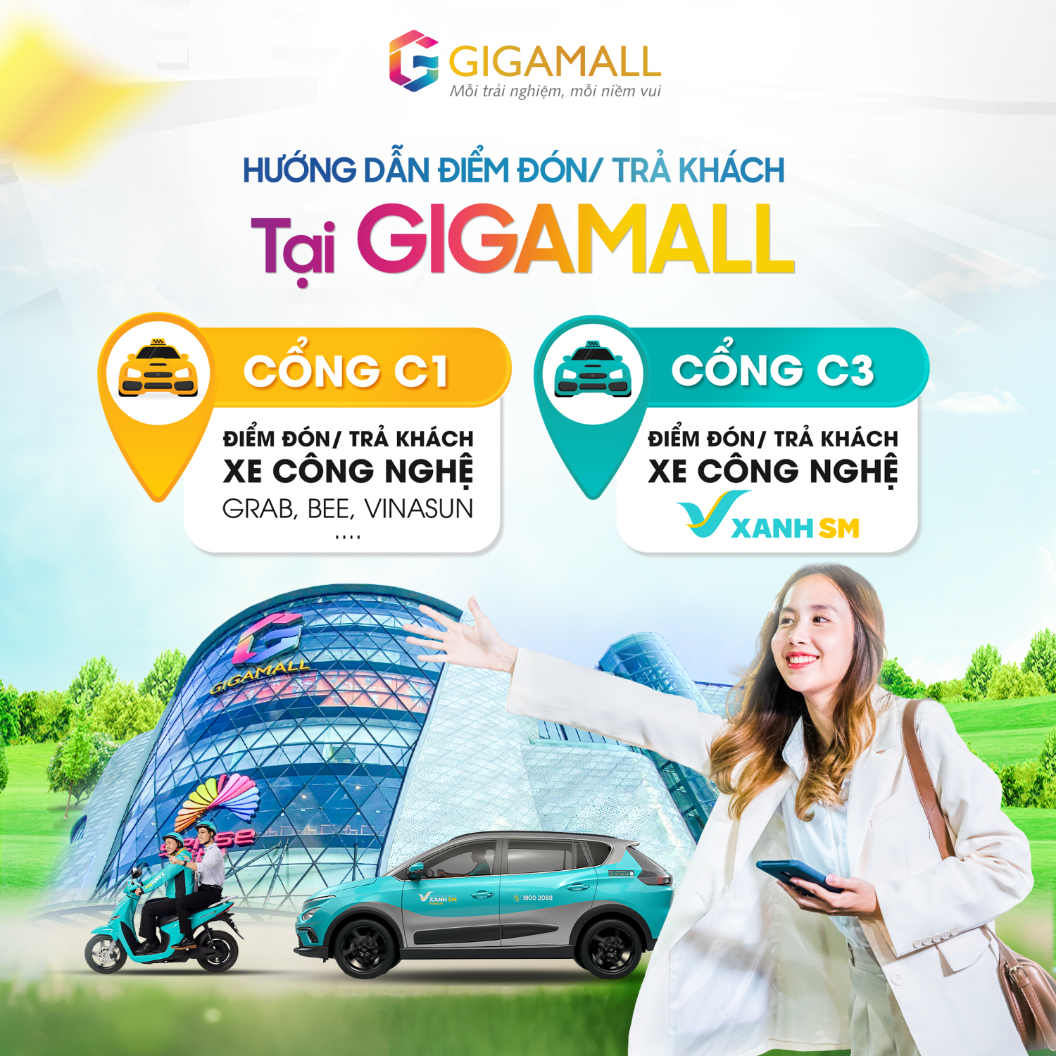 thông tin về các điểm đón – trả khách tại Gigamall dành cho các loại xe taxi và công nghệ: