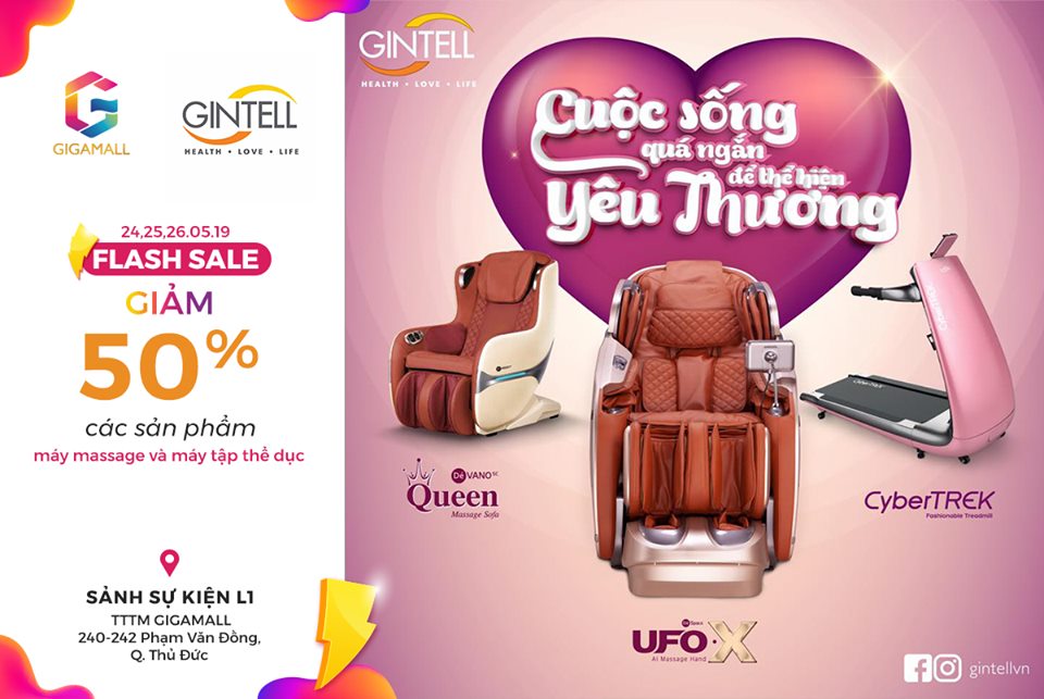 GINTELL DISCOUNT 50% OF MASSAGE MACHINES AND EXERCISE MACHINES AT FLASH SALE DAY FROM 24 TO 26, MAY